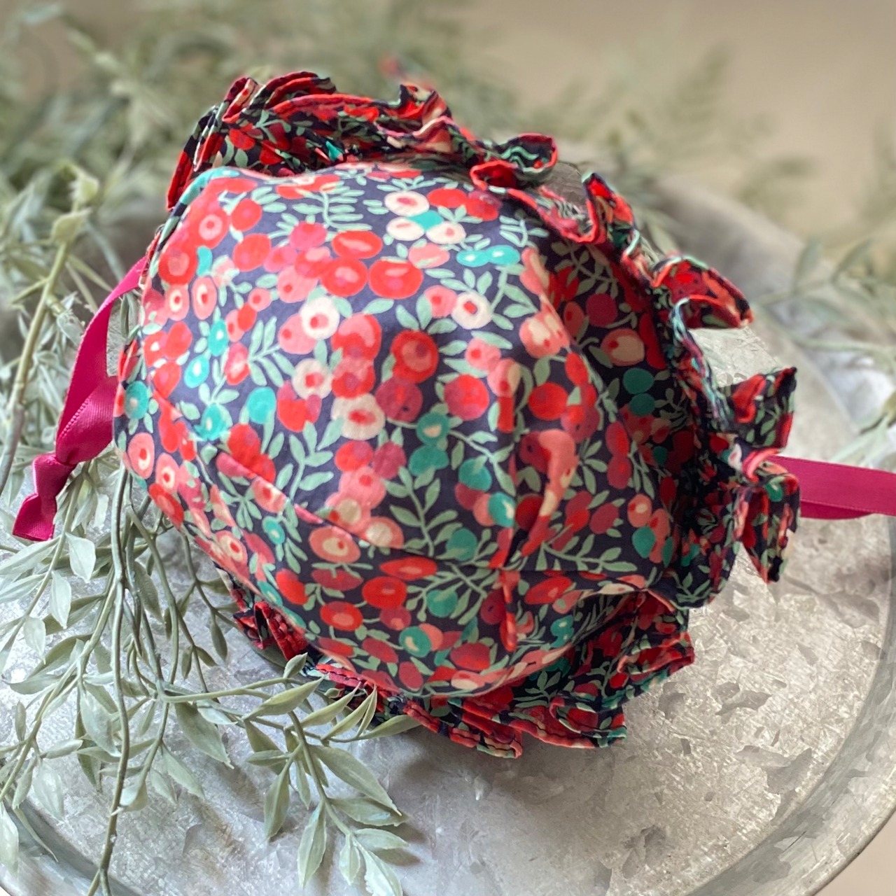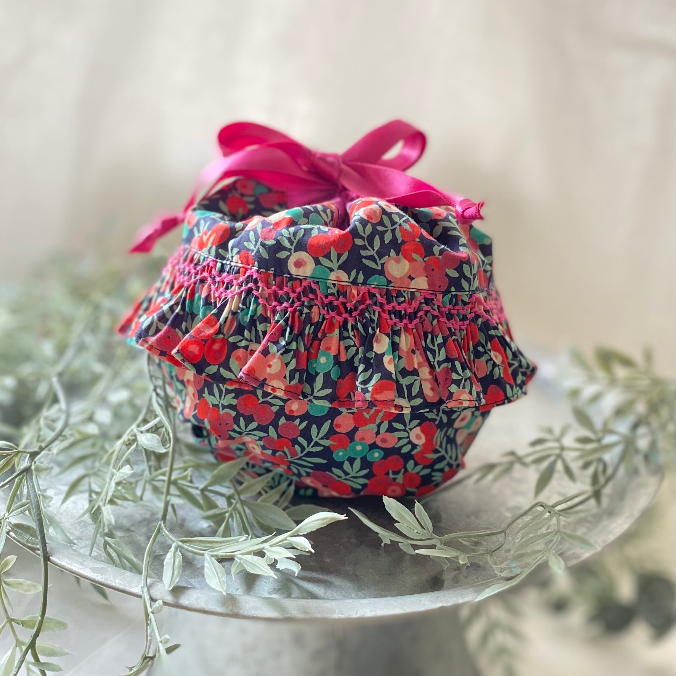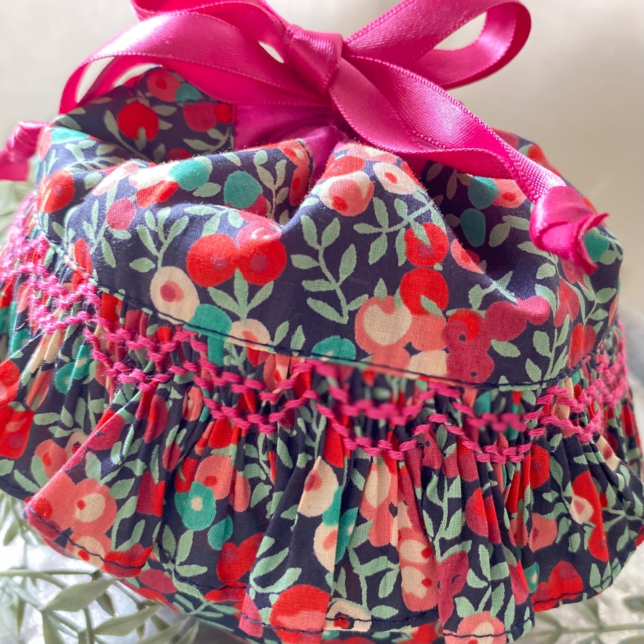 スモッキングフリルが可愛いリバティまんまる巾着【ウィルトシャー】