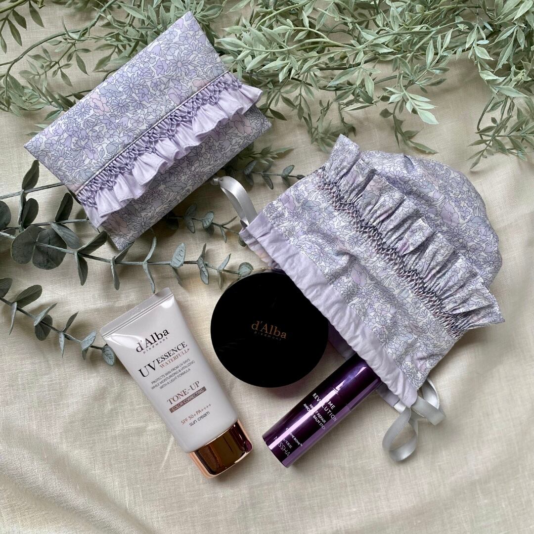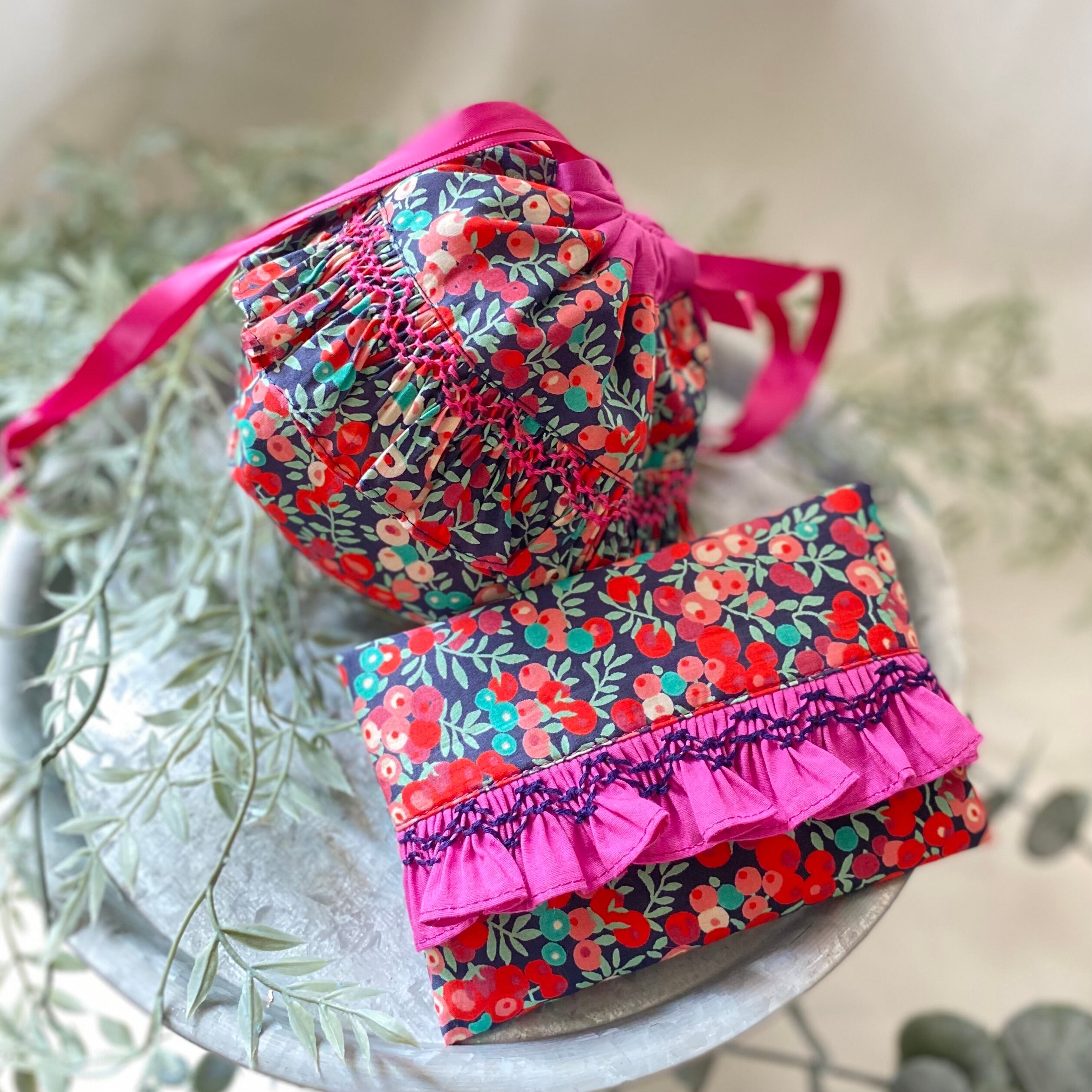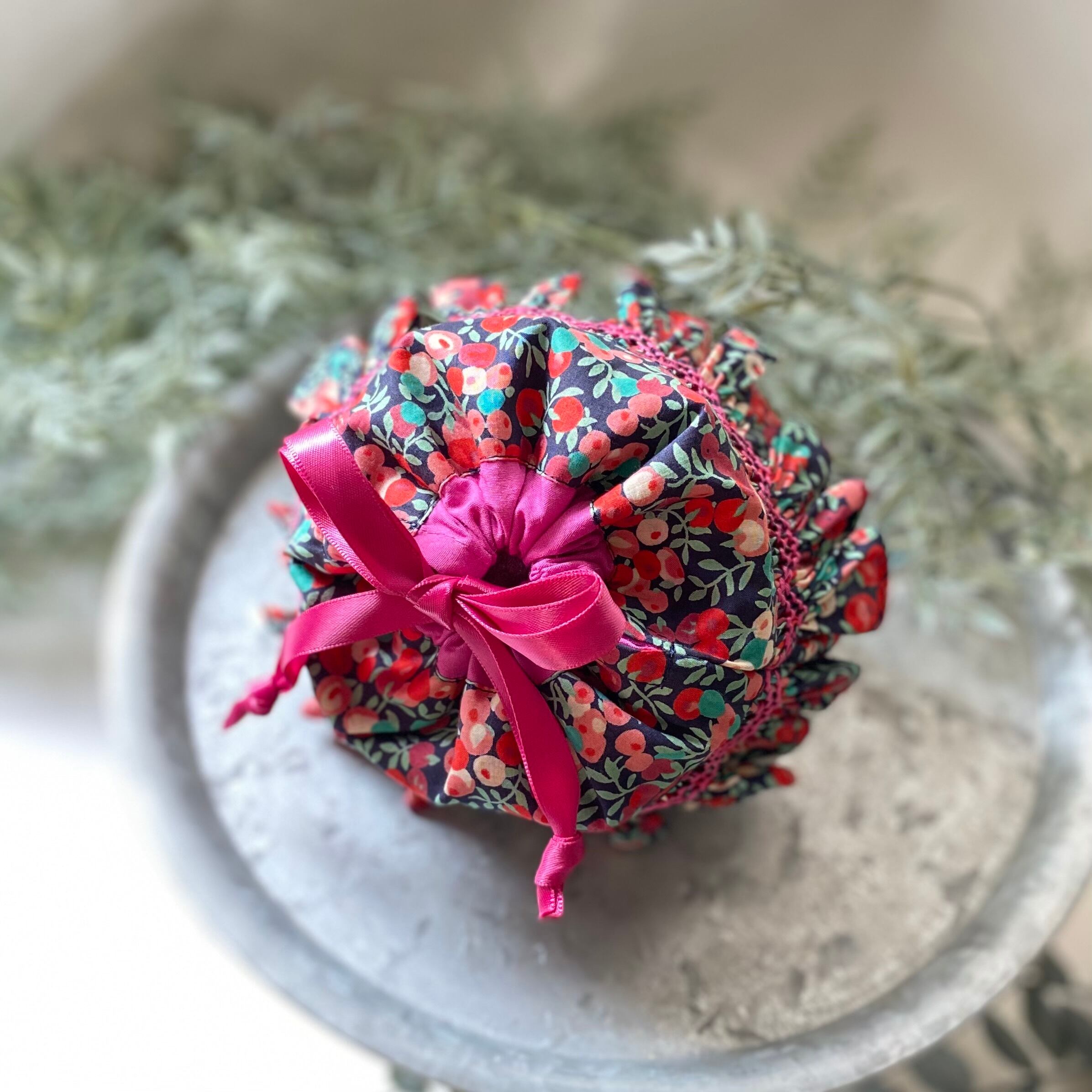 スモッキングフリルが可愛いリバティまんまる巾着【ウィルトシャー】