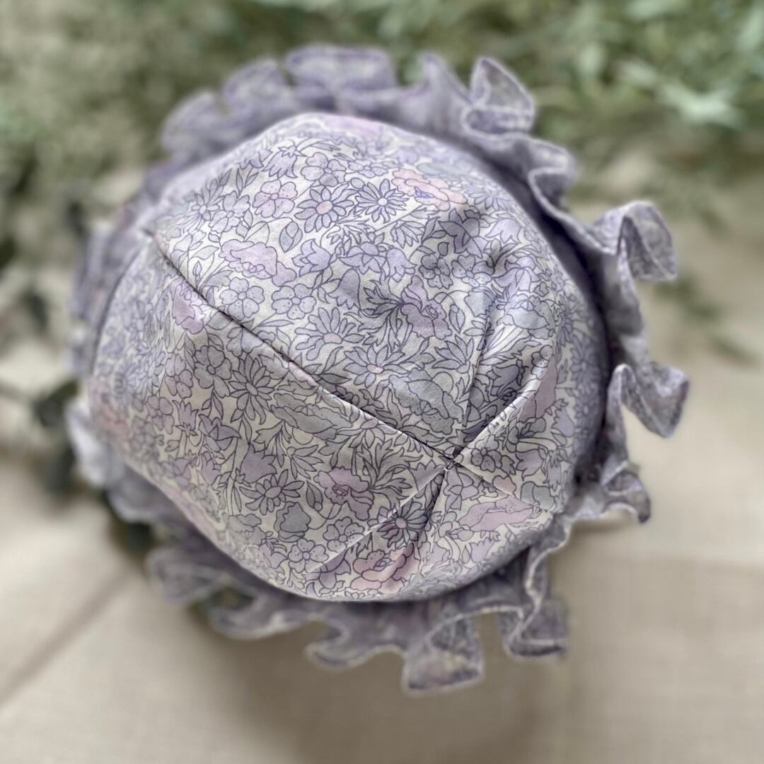 スモッキングフリルが可愛いリバティまんまる巾着は、